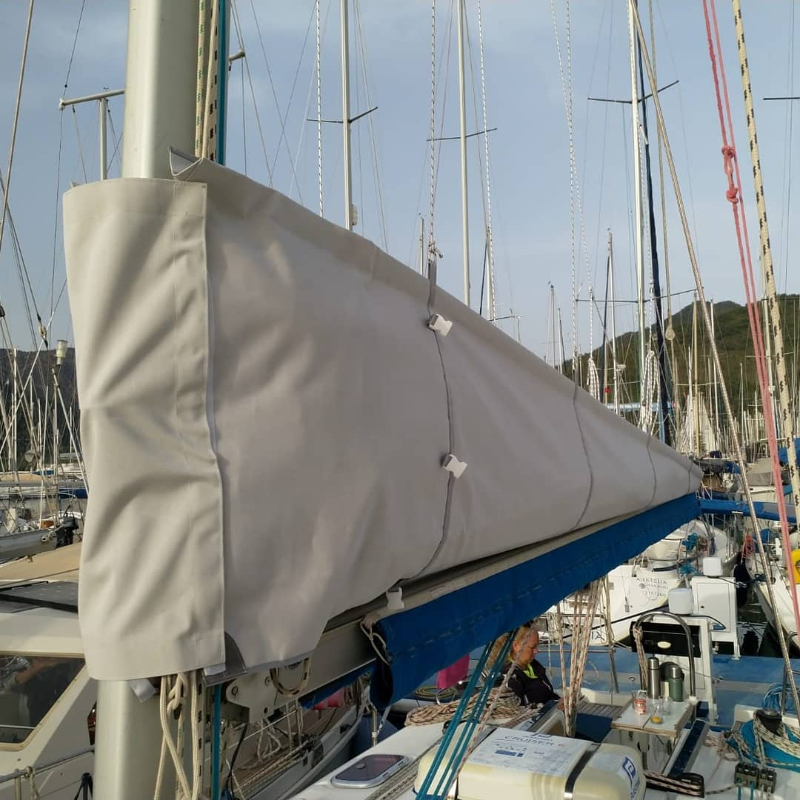 Lazy Bag kesinlikle ana yelkeninizi saklamanın en kolay yoludur. Yelken saklama sistemlerimiz akrilik yelken kılıfı ve lazy jack karışımıdır. Yalnızca mandarınızı salıp, yelken kılıfı ile lazy jack arasına yerleşmesini sağlayın ve kılıfı kapatmak için fermuarı çekini.
